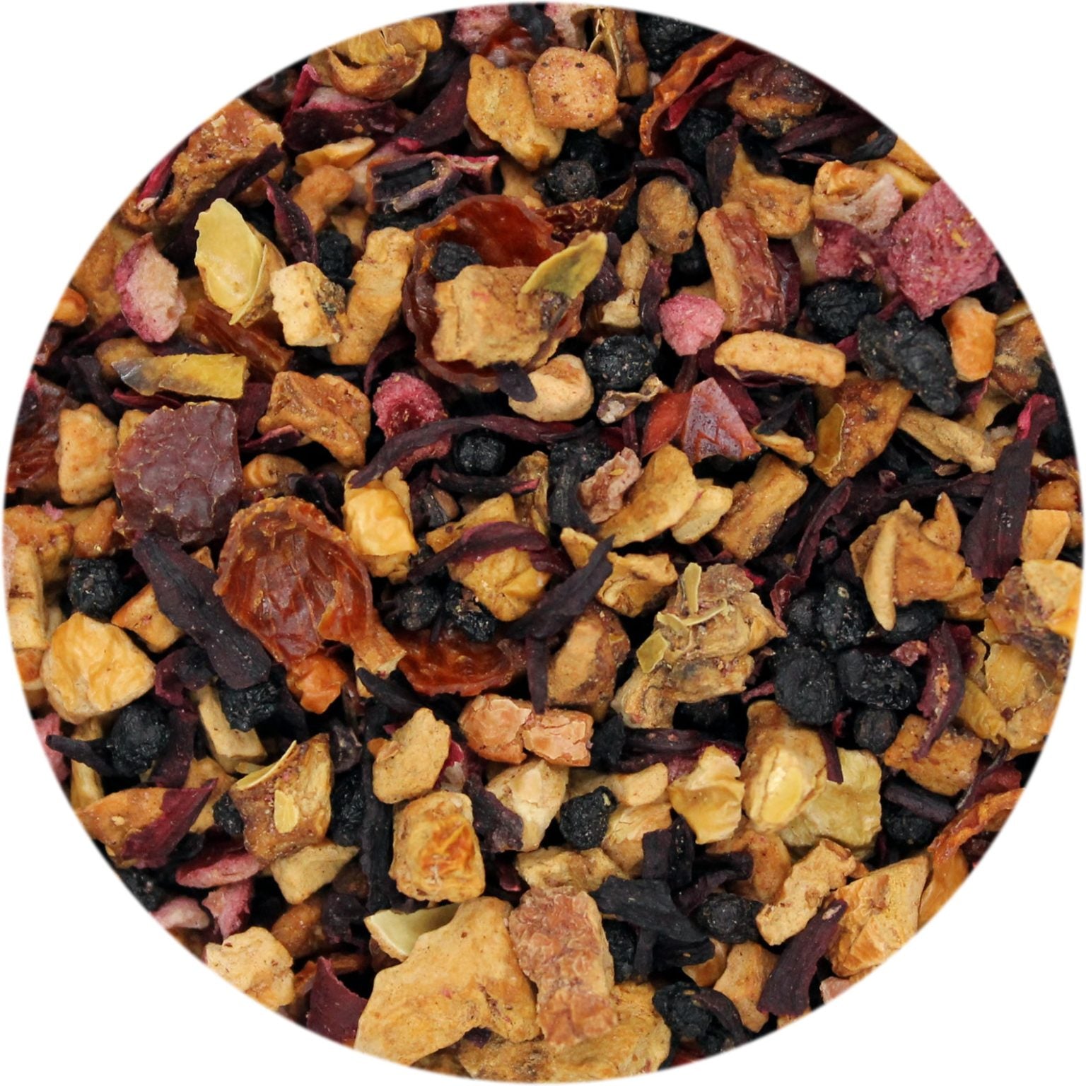 Ingredients: Apple pieces, Hibiscus petals, Rosehip, Elderberry, Cranberry pieces, Natural flavors.