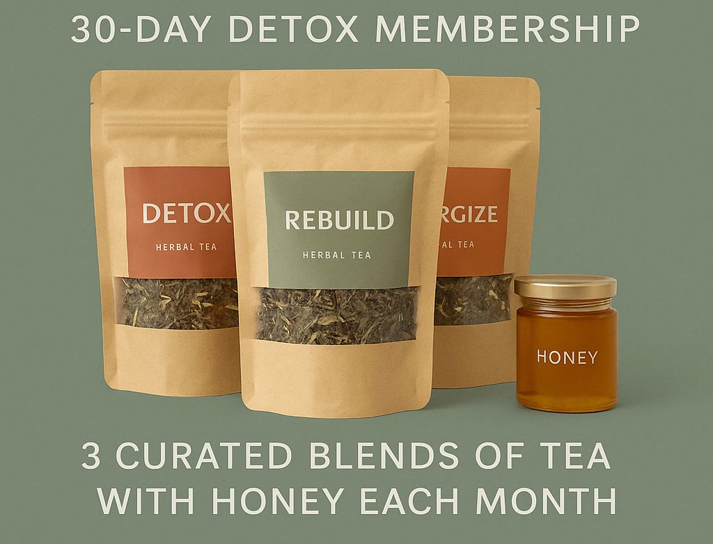 Each month, you’ll receive three curated blends of detoxifying teas paired with our Golden Vitalis infused honey, carefully selected to support your liver, kidneys, pancreas, gut and more. These blends target your  body’s natural filtration system. Our blends rotate monthly to match your evolving fitness and recovery goals, keeping your system in flow and your energy aligned.
